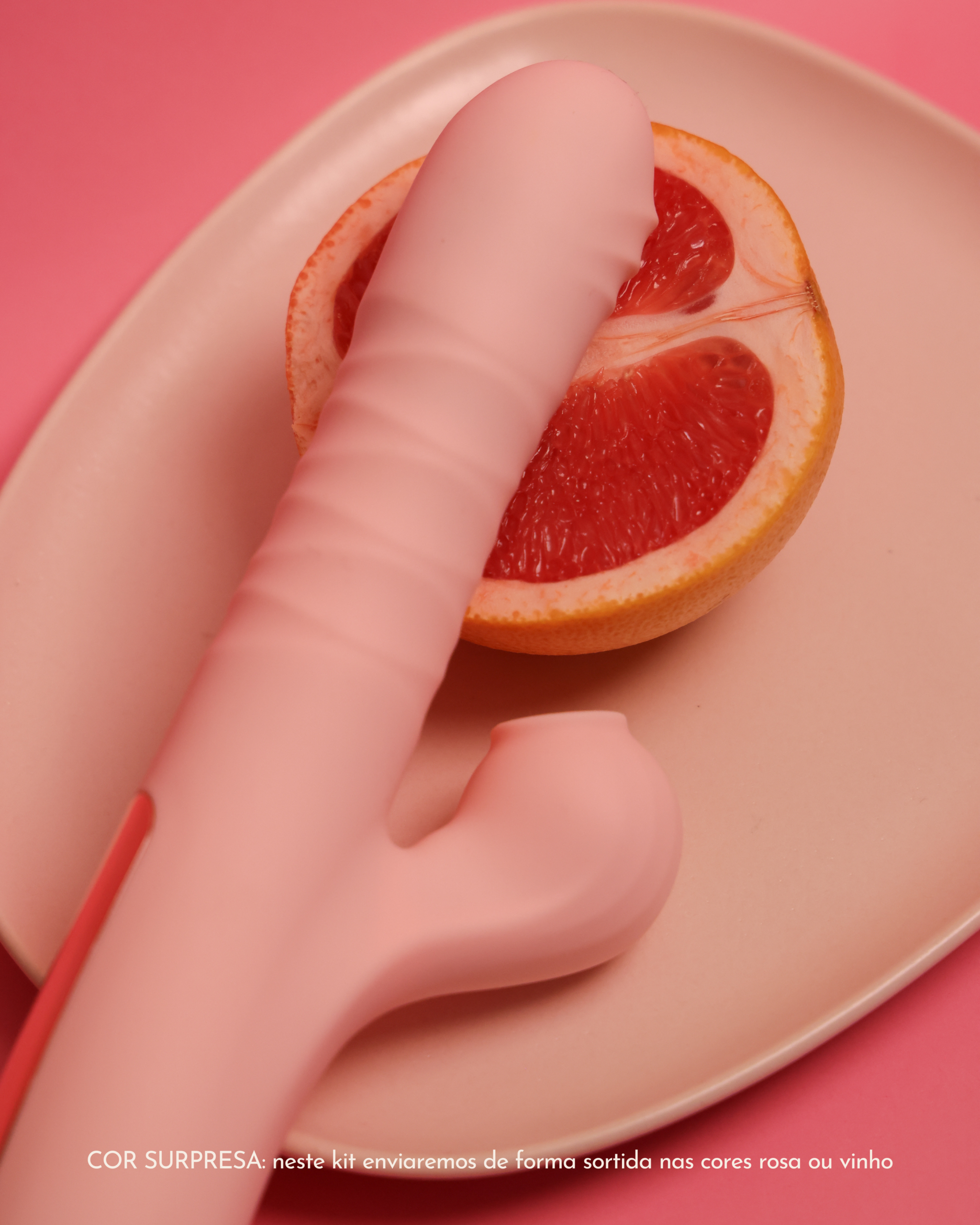 O Kit Coelho Safado combina a potência nosso BOSS, que é um vibrador de penetração com orelhinha sugadora acoplada + um ovinho masturbador HUEVO, que tem uma textura interna deliciosa para massagear o pênis + o LUBRISEX que é o lubri neutro, seguro e eficaz para tudo deslizar gostosinho!