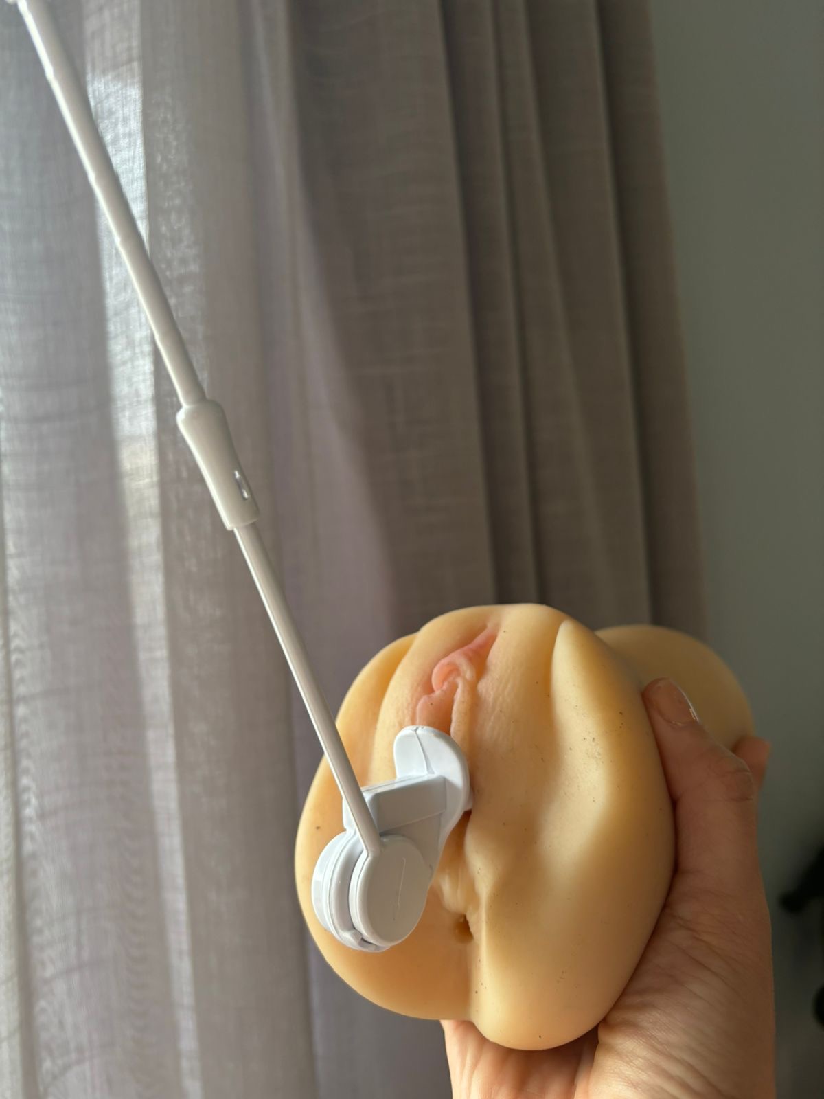 Funciona assim: você introduz a “cabeça” do equipamento e deixa só a anteninha pra fora, e quando tentar “contrair” os músculos íntimos, essa anteninha vai mexer para baixo, quando relaxar, ela volta à posição inicial. Isso possibilita inúmeras formas de praticar os exercícios íntimos e saber que está ativando os músculos certos!